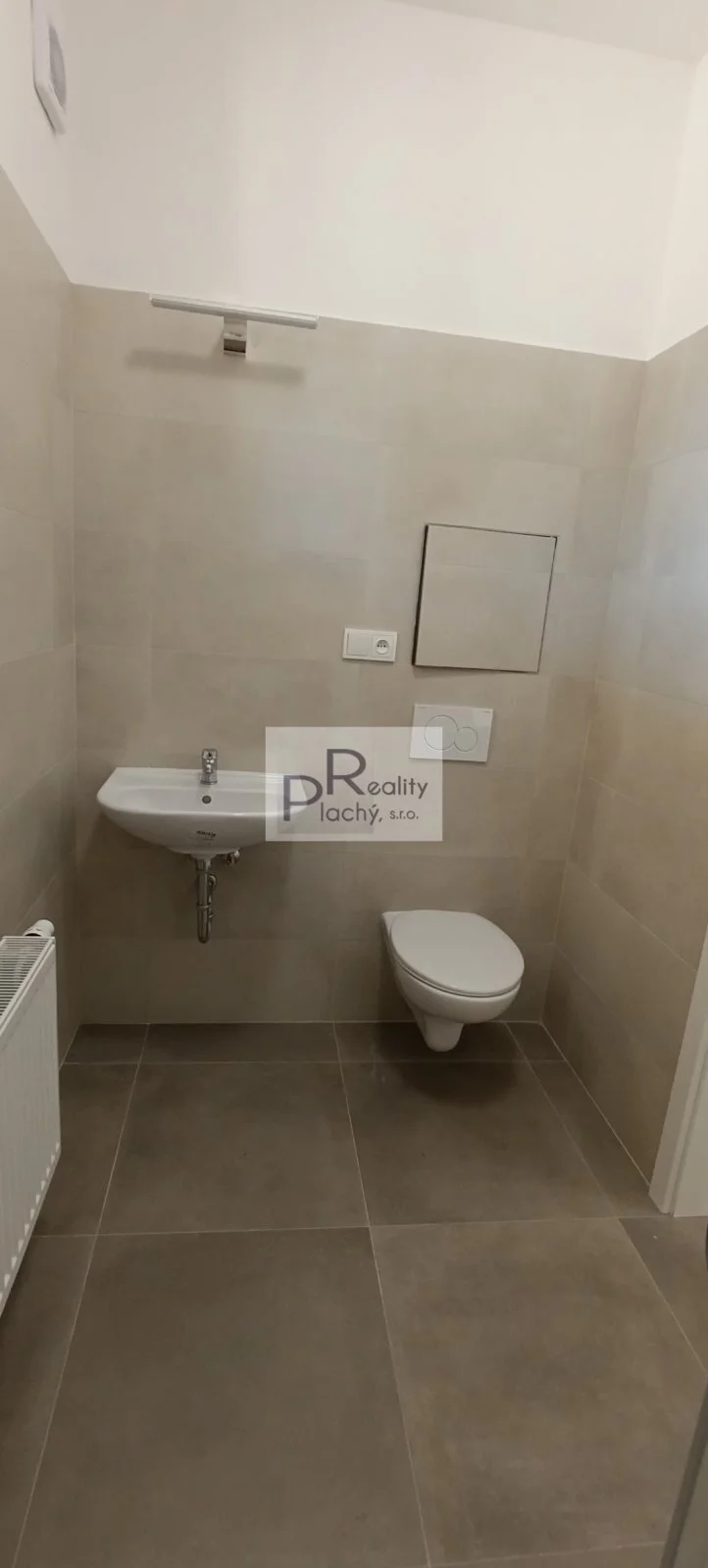 Byt je vytápěn úsporným tepelným čerpadlem s radiátory, což zajišťuje nízké provozní náklady a komfort po celý rok.