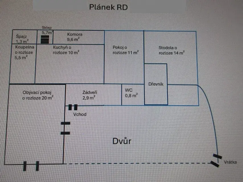 Popis: zastavěná plocha a nádvořím 175 m2, obytná plocha 53 m2, užitná plocha 143 m2.