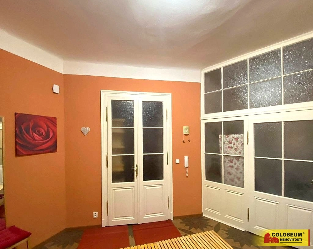 Nabízíme k pronájmu secesní rohový byt v domě o dispozici 3+kk a výměře 119,7 m², umístěný ve 3. patře prestižní historické budovy na rohu ulic Kobližná a Novobranská. Tento byt byl v minulosti užíván samotným vlastníkem nemovitosti či ředitelem společnosti – jde tedy o nejreprezentativnější byt celého domu.