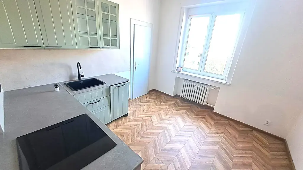 Družstevní vlastnictví, převod bytové jednotky 1+1 ve 4. patře s novým prostorným výtahem o výměře 45 m2 + 4 m2 sklep. K bytu patří lodžie na mezi poschodí, u kuchyně je potravinová spižírna. Byt s nízkými náklady na žití, které činí nyní pro dvě osoby pouze 4300,- kč měsíčně, DR. vlastnictví (bez anuity). Byt je nově zcela rekonstruován včetně koupelny, wc a odpadů a vodovodních rozvodů, v kuchyni instalována kvalitní kuchyňská linka na míru osazená spotřebiči ( myčka, digestoř, trouba s grilem, indukční deska). V bytě zachovány původní prvky, dveře, obložky, parkety atd. Byt se skládá z prostorného pokoje 20,2 m2 a kuchyně se spíží 14 m2, v jednotce je prostorná chodba s úložnými vestavnými prostory, nová koupelna se sprchovým koutem, samostatně je odděleno WC. Krásné světlé prostory s možností přestavění na byt 2+kk. K jednotce patří sklepní koje 4 m2 v suterénu objektu. Byt je vhodný pro jednu, či dvě osoby jako bydlení se skvělou dostupností, obslužností dnes prakticky v širším centru Prahy na metru (budoucí přestupní stanice). Lokalita skýtá nespočet možností zábavy, volnočasové aktivity, v blízkosti parku Jezerka, Kavčí Hory, centrální park Pankrác. U metra je OC Arkády Pankrác, což jsou 2 minuty chůze. Jedná se o družstevní byt, což k financování z úvěru předpokládá dispozici jinou nemovitost k zástavě. Jedná se o malé družstvo pouze jednoho domu, které se velmi pečlivě stará o dům jeho správu a zachování klidu v domě a původní arch. návrhu včetně např. barevného provedení a podobně. Dům je pečlivě obyvateli udržován a předsednictvím družstva a plně renovován. Dům má čistý ucelený vzhled a design z doby svého vzniku, tzn. z let první republiky. V bytě je klid, není slyšet silnice a okna z bytu jsou výhradně do klidného hezkého vnitrobloku s jižní orientací. Za domem je příjemný společný dvůr a se zahradní úpravou s několika vzrostlými stromy a posezením. Dům má vlastní plynovou kotelnou, čímž se zlevňují provozní náklady.