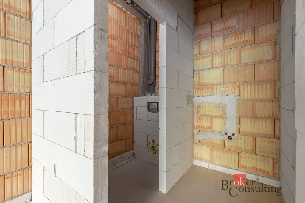Při převzetí budou realizovány všechny příčky plánovaných sociálních zařízení a do prostoru budou zavedeny hlavní rozvody elektřiny, vody a topení. V rámci samotné jednotky již nejsou provedeny žádné další instalace, což poskytuje prostor pro individuální dokončení podle potřeb budoucího využití.