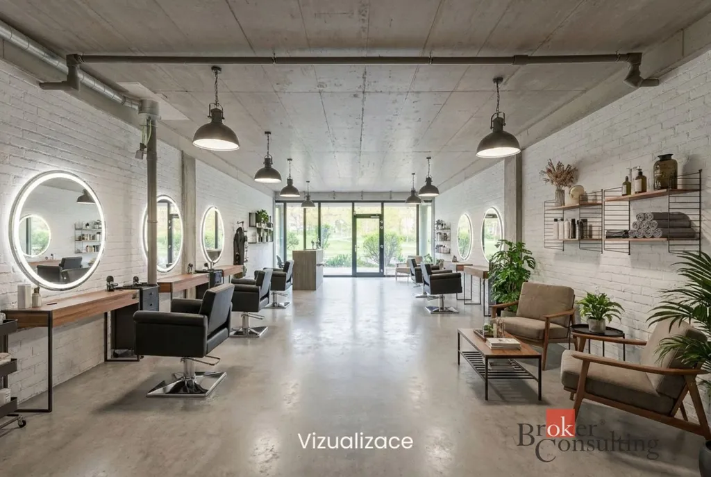 V zadní části se nachází připravené zázemí pro vybudování toalety. Dispozice prostoru umožňuje široké spektrum využití – je vhodný například pro kancelář, obchod, showroom či kosmetický nebo kadeřnický salón.