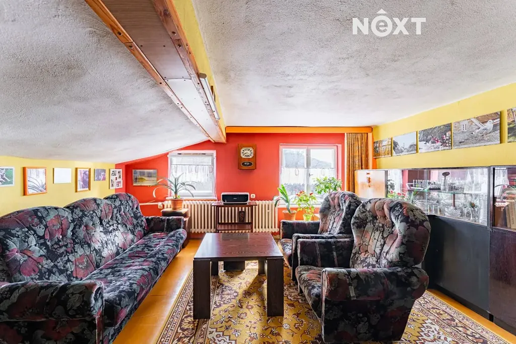 Horní patro pak nabízí další dva pokoje, kuchyni a koupelnu. Aktuálně je v původním stavu, což ale otevírá ideální příležitost vytvořit si prostor přesně podle vlastních představ. Může zde vzniknout další bytová jednotka, pracovna, ateliér, posilovna nebo prostor pro hosty.