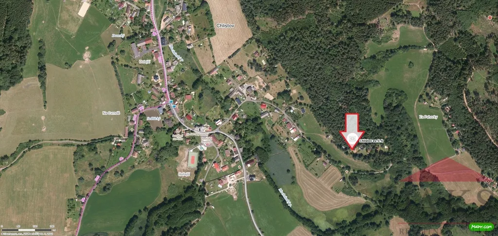 Příjezd po obecní asfaltové cestě z Chlistova a následně po nezpevněné obecní cestě.