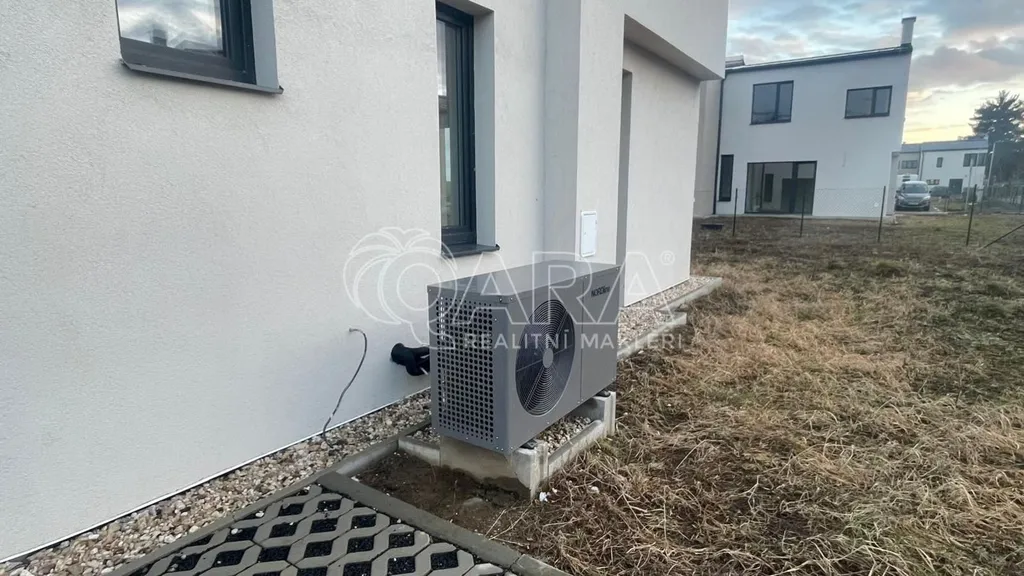 Vytápění domu (elektrické podlahové topení v obou podlažích) i ohřev vody bude řešeno tepelným čerpadlem (za příplatek) a/nebo je možno využít krbové kamna, která jsou umístěna v obývacím pokoji. Vnitřní vybavení každé bytové jednotky si vyberete z široké nabídky podlahových krytin, obkladů koupelen, dlažeb, zařízení koupelen, přičemž vše je v kupní ceně nemovitosti v rámci standardů (cca 400 kč/m na podlahy, dlažba, obklady). Standardy domů jsou na vysoké úrovni. V rámci klientských změn je možné dohodnout úpravy dle konkrétních přání a požadavků klienta.
