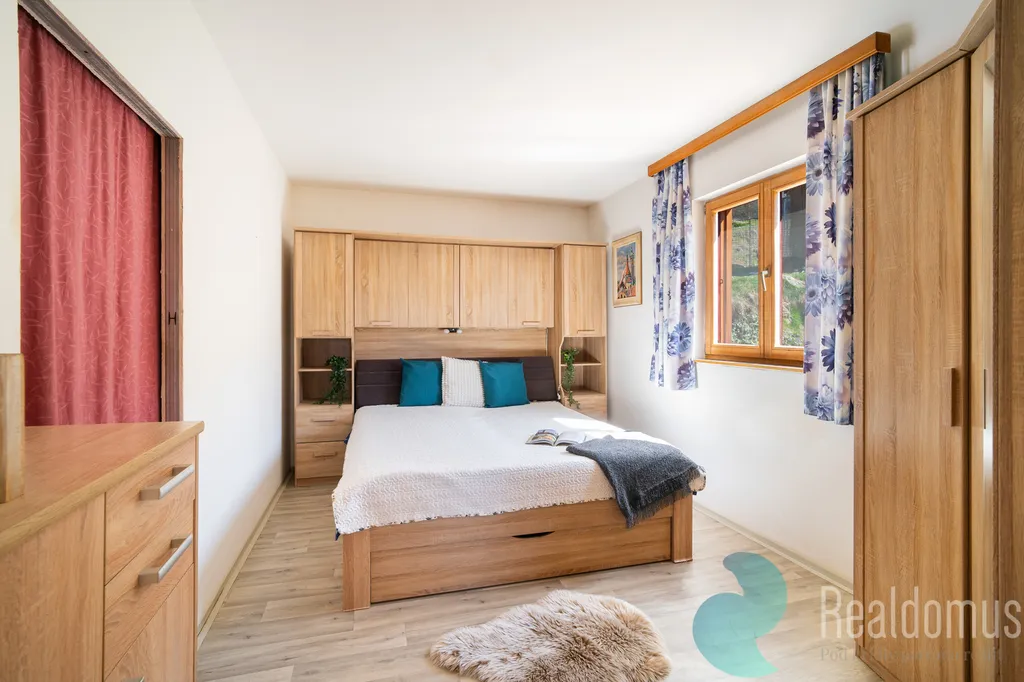 Rodinný dům je postaven moderní technologií dřevostavby s důrazem na nízké provozní náklady a příjemné vnitřní klima, které umožňuje celoroční užívání. Bylo zde zohledněno prostředí ve kterém tento projekt vznikal a proto se jedná o naprostou energetickou nezávislost s ohledem na ekologii. Výtop je řešen krbem a elektrickou energii řeší fotovoltaický systém. Majitel zde celoročně žil a proto je tento způsob vyzkoušený. Dřevostavba nabízí otevřený obývací prostor s kuchyní a jídelnou tvořící srdce domova a nabízí přímý vstup na jižní terasu se vstupem do zahrady. Dům nabízí dispozici 4kk, kdy kromě obývacího prostoru s jídelnou a kuchyňským koutem zahrnuje i ložnici, dva pokoje a koupelnu s toaletou.