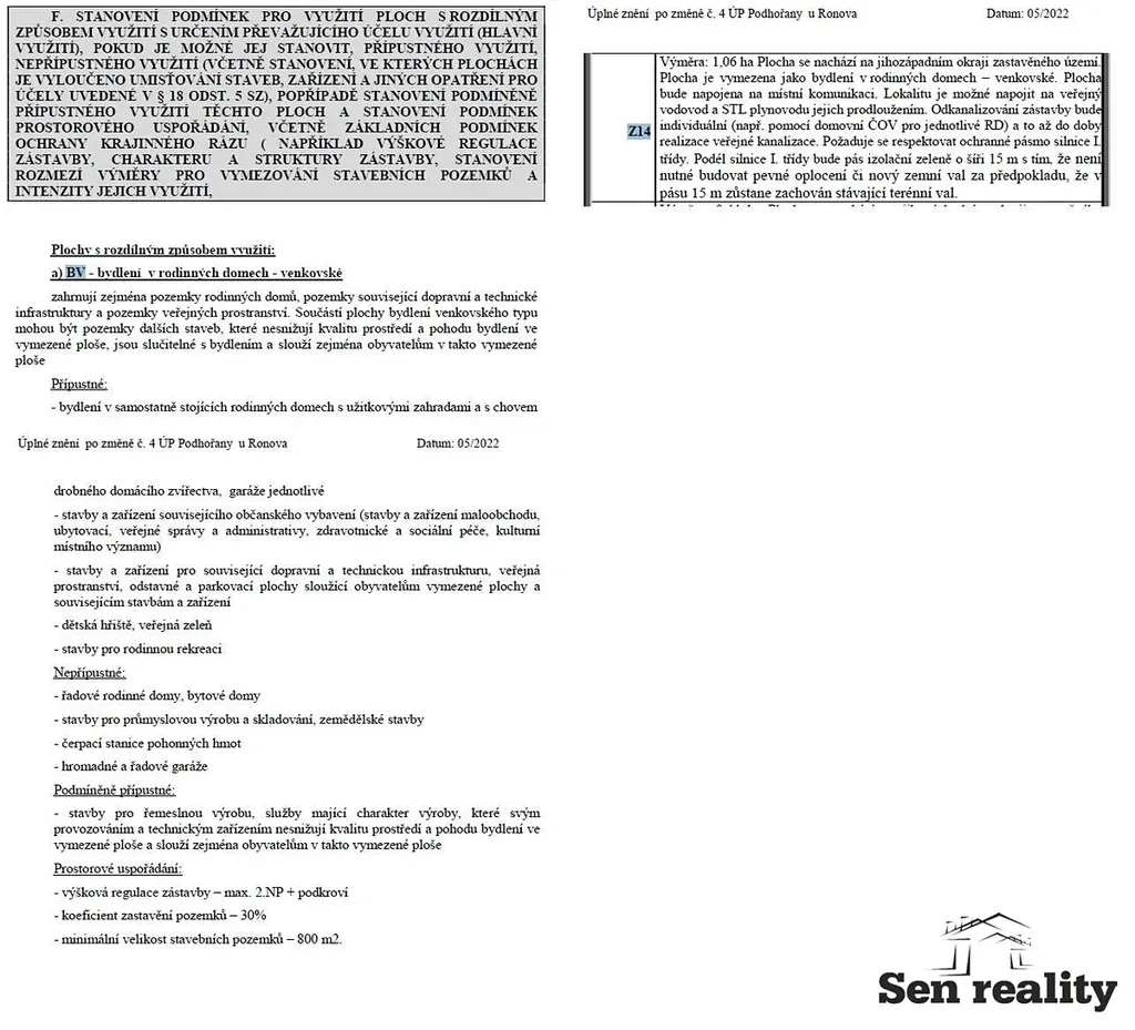 Dle územního plánu je plocha vymezena jako bydlení v rodinných domech - venkovské. Maximální zastavitelnost činí 30 % a regulace umožňuje výstavbu o dvou nadzemních podlažích s podkrovím.