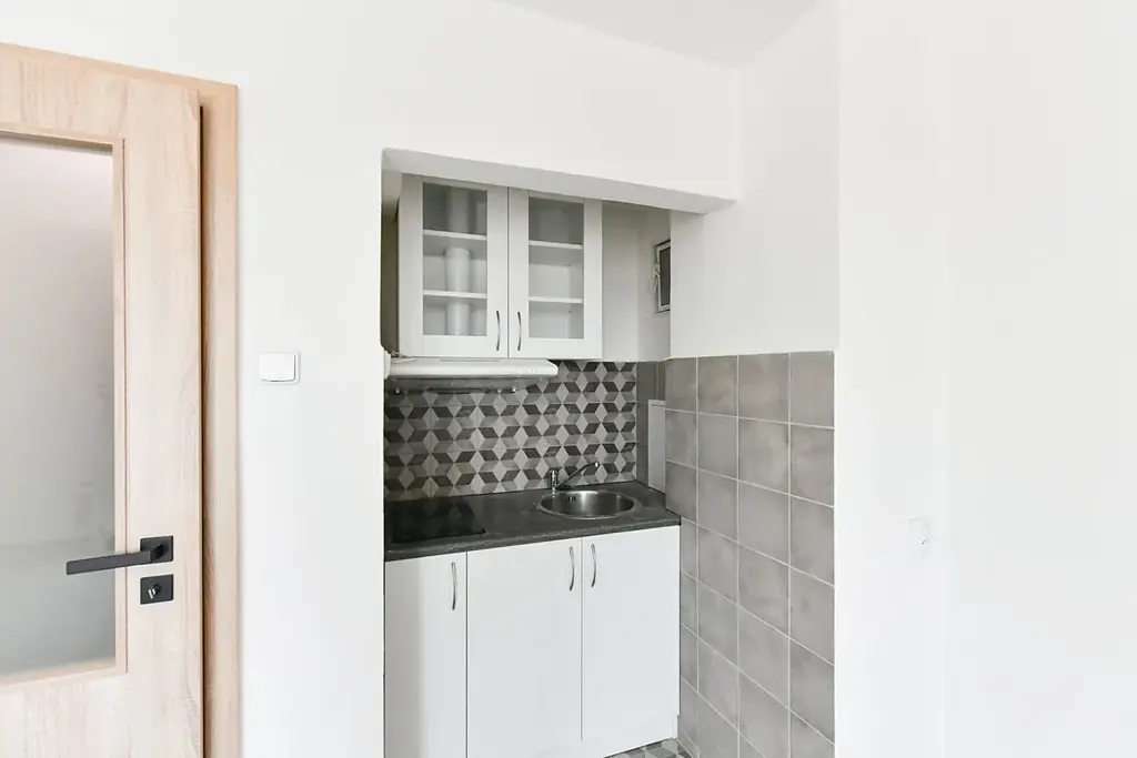 K dlouhodobému pronájmu nabízíme byt po rekonstrukci o velikosti 1+kk po kompletní rekonstrukci v 6. NP činžovního domu na nám. Jiřího z Lobkovic.