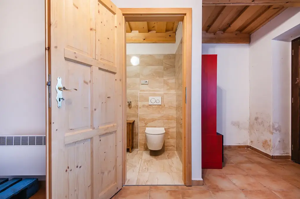 Dispozičně je dům řešen jako 2+1 a nabízí příjemný obytný prostor ideální pro jednotlivce, pár, rodinu nebo jako víkendové útočiště. Ze zádveří je vstup do malé chodby, která vede do obývacího pokoje. Ten je situován směrem do ulice. Navazuje na něj kuchyň a zádveří vede také do ložnice. Za ložnicí je koupelna se sprchovým koutem, umyvadlem a pračkou. Další samostatný pokoj s vlastní koupelnou, je přístupný ze dvora, rozšiřuje možnosti využití – může sloužit jako pokoj pro hosty, pracovna nebo menší apartmán.