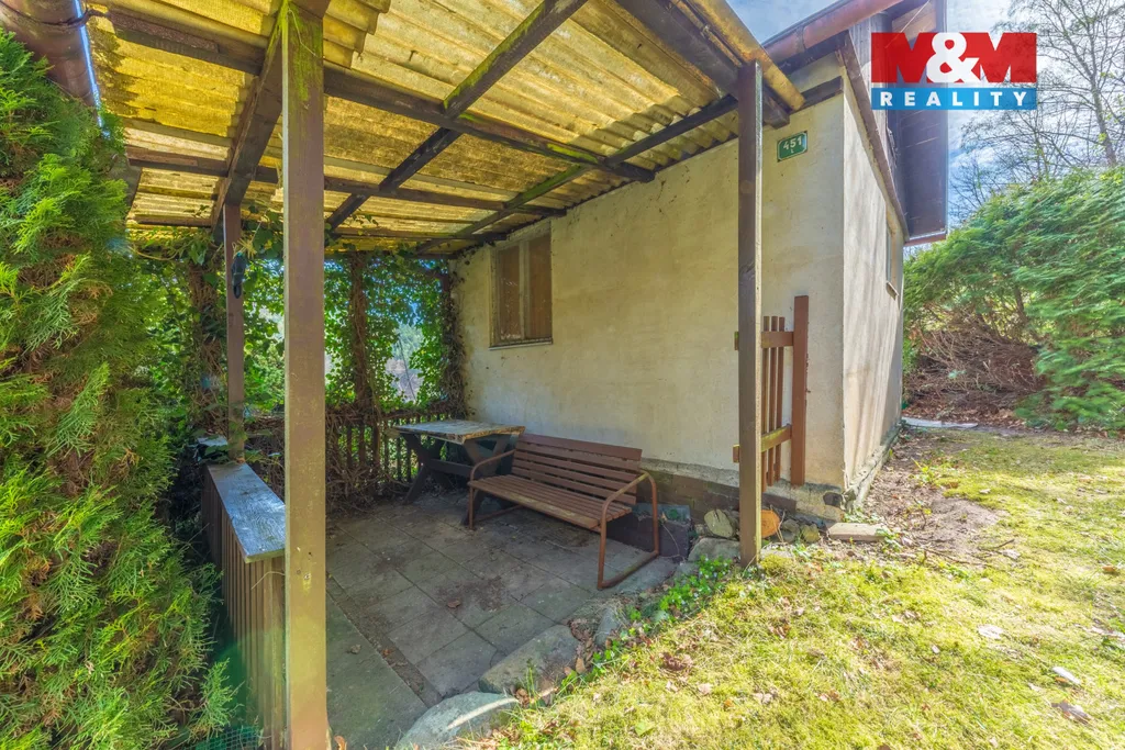 Exkluzivně nabízíme zděnou chatu o dispozici 1+1 v Děčíně - Bělá, která se nachází na pozemku o ploše 596 m2 v bezprostřední blízkosti lesa, což nabízí soukromí. Na pozemek je přivedena užitková i pitná voda a elektřina je přivedena až do chaty. Chata je podsklepená a vedle chaty je pergola. Z pozemku je krásný výhled do okolí. Vytápění chaty je lokální. Pro