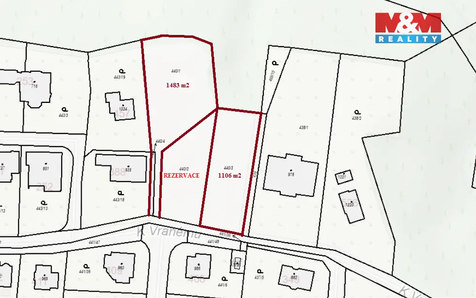 Prodej souboru stavebních parcel o celkové rozloze 3.514 m². Pozemky jsou již rozděleny na samostatné parcely o velikosti 871m² (v rezervaci), 1106m², které přímo navazují na ulici K Vranému a pozemek u kraje lesa 1483 m² s vlastní cestou 54 m². Pozemky jsou lokalizovány v jedinečné okrajové rezidenční části obce Ohrobec a díky tomu splňují nároky pro moderní klidné bydlení. V ceně je zahrnuta realizace přípojky RD na kanalizaci a vodovod, možnost napojení na elektřinu je u na hranic pozemků. Dle ÚP je možné na každé z parcel vystavět dvoupatrový rodinný dům, řadový dvojdům nebo nízký bytový dům. V obci ZŠ, MŠ, obchody s potravinami, restaurace, kavárna. Dostupnost do Prahy MHD každých 30 min autobusem. Skvělé místo k turistice, v okolí Keltské oppidum, dva rybníky, vyhlídková Homole a rozhledna Na Závisti. Uvedená cena v inzerci je za pozemek 1106 m².