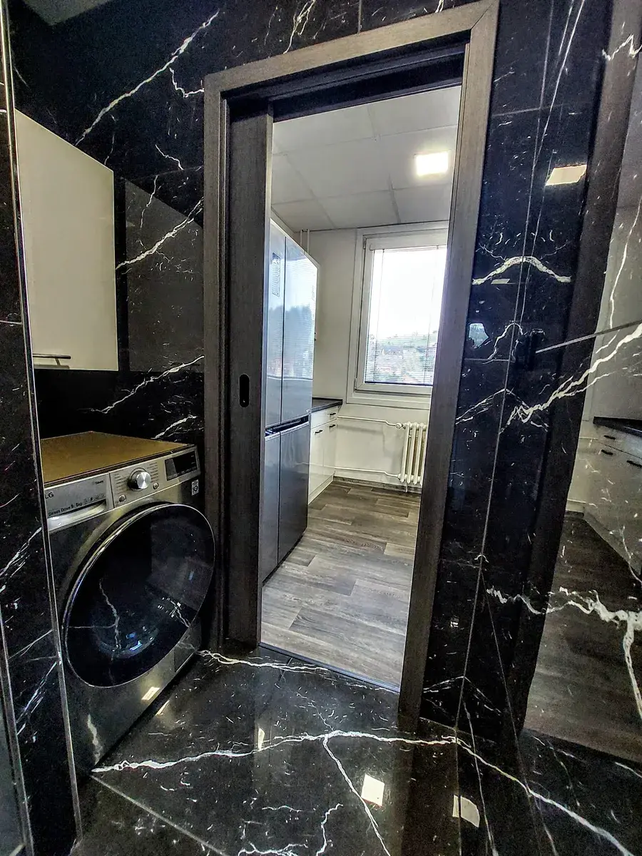 V bytě provedeny úpravy viz.foto. Vestavěné skříně, obložkové zárubně a dveře, žaluzie, sítě proti hmyzu, podlahové krytiny, klimatizace, pračka, americká lednice a hlavně zděný sklep.
