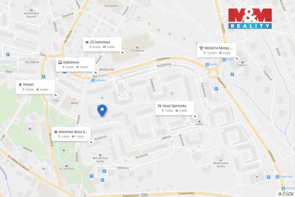 Lokalita nabízí kompletní občanskou vybavenost – v docházkové vzdálenosti se nachází obchody, škola, školka, zastávky MHD i další služby. Výhodou je také blízkost centra města. Za domem se nachází dětské hřiště, což ocení nejen rodiny s dětmi.