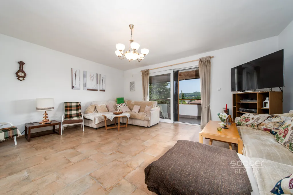 Dominantou domu je světlý obývací pokoj s krbovými kamny, která vytvářejí příjemnou atmosféru a zároveň efektivně vytápí prostor. Na obývací část navazuje jídelna a kuchyně s plně vybavenou kuchyňskou linkou. Z kuchyně je vstup na zahradu a terasu, ideální pro relaxaci nebo posezení s rodinou a přáteli. Dalším benefitem je krytá terasa s krásným výhledem do okolí.