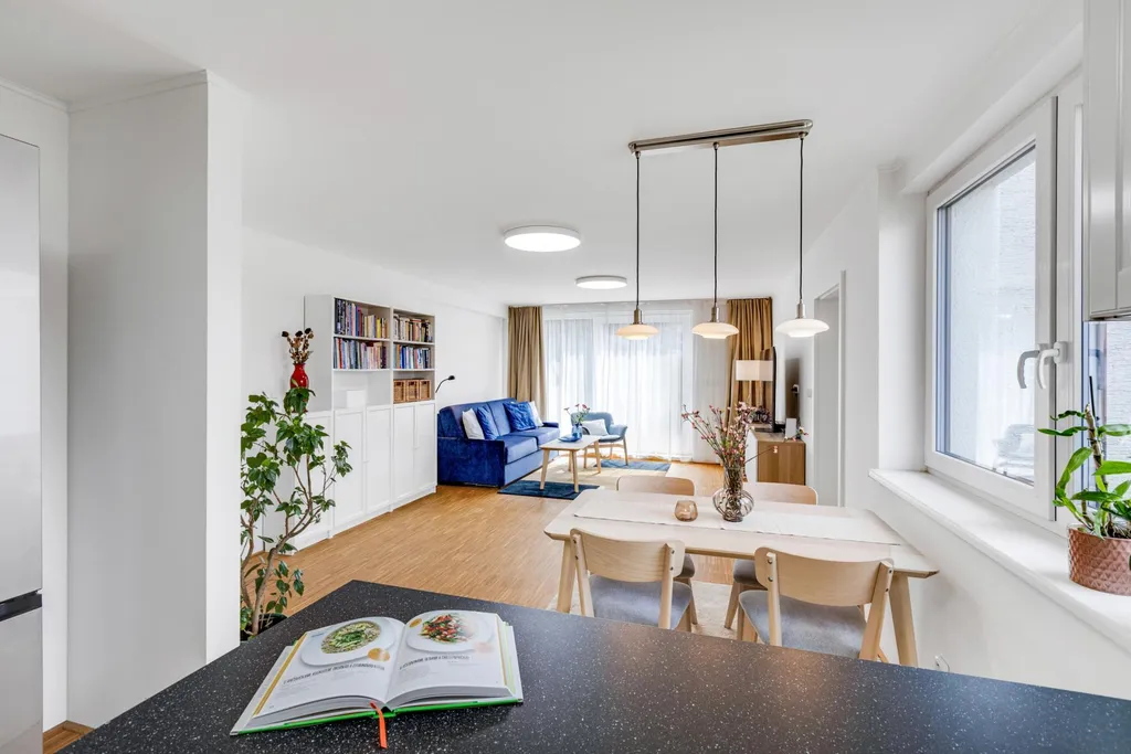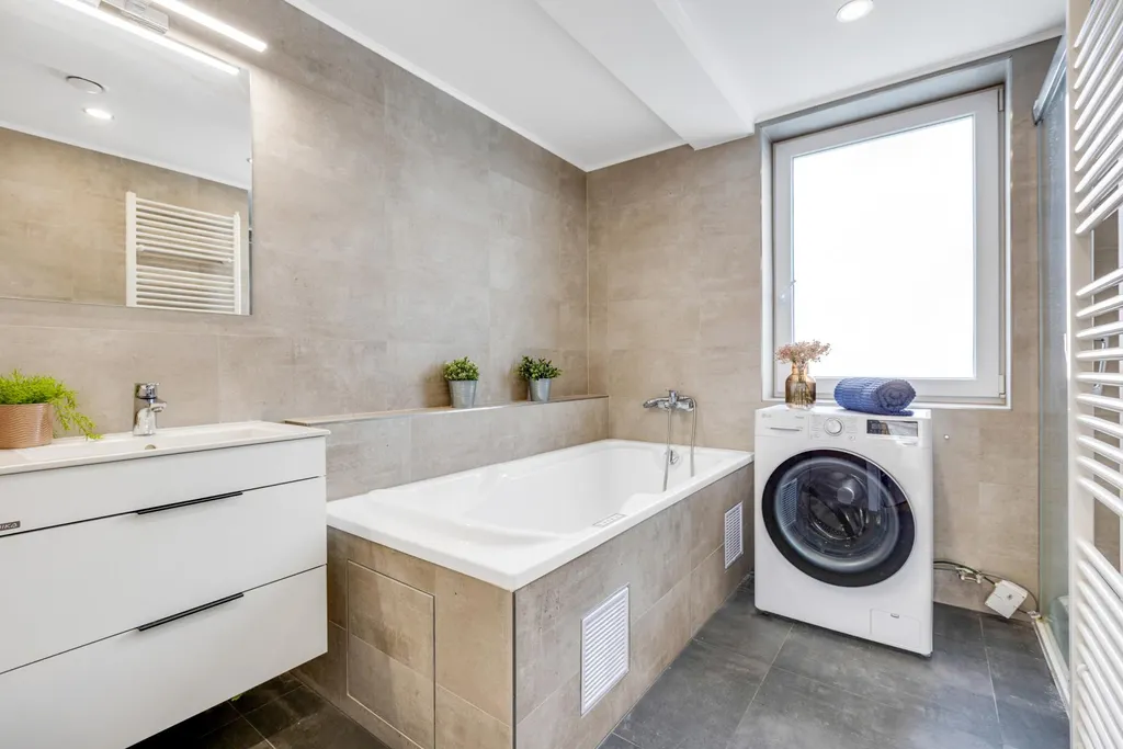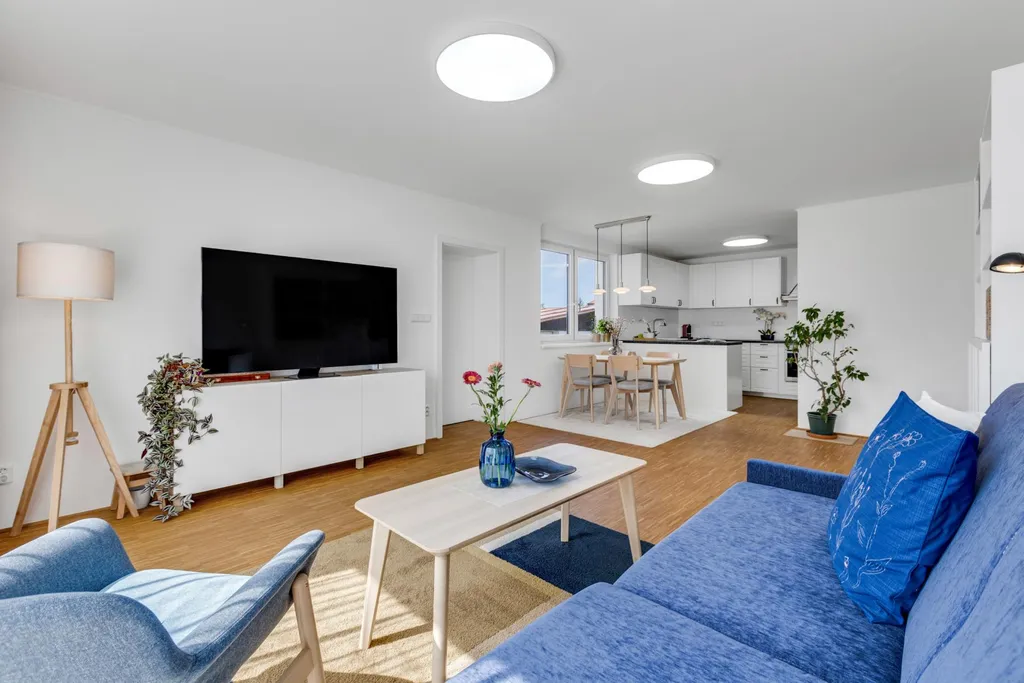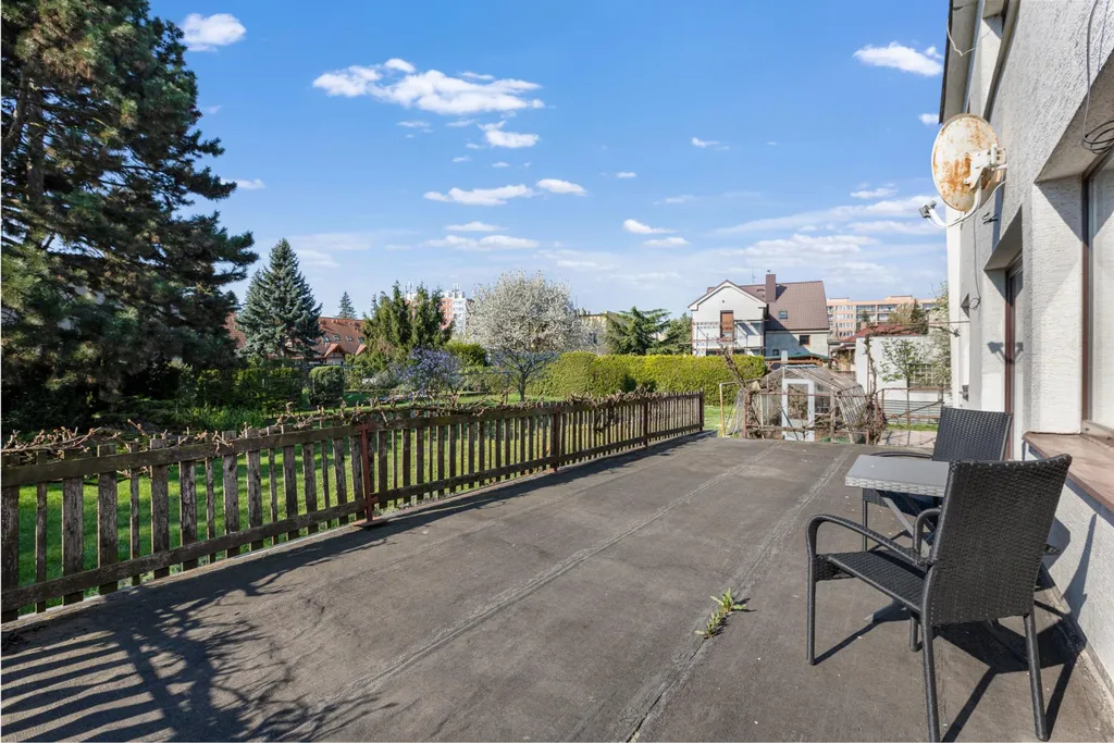 V přízemí se nachází moderně a kompletně zrekonstruovaná bytová jednotka o dispozici 3+kk s výměrou cca 90 m2, jejíž dominantou je obývací část s kuchyní a jídelním koutem o velikosti téměř 40 m2. V celém interiéru najdete kvalitní materiály, včetně dřevěných podlah. Samozřejmostí je samostatná koupelna s vanou i sprchovým koutem, oddělené WC, praktická komora a dva další prostorné pokoje. A bonusem je přímý vstup na prostornou terasu, a to jak z ložnice, tak z obývací části.