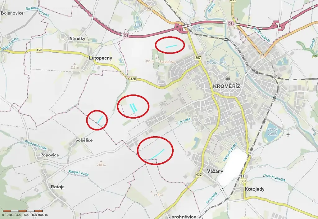 Lokalita na západní straně města nabízí výbornou dostupnost a strategickou polohu. Parcela č. 4611 se nachází pouhých cca 400 metrů od dálnice D1, což výrazně zvyšuje její atraktivitu i do budoucna. Všechny pozemky mají zajištěný přístup, což je klíčový faktor pro jejich bezproblémové užívání i případné další nakládání.