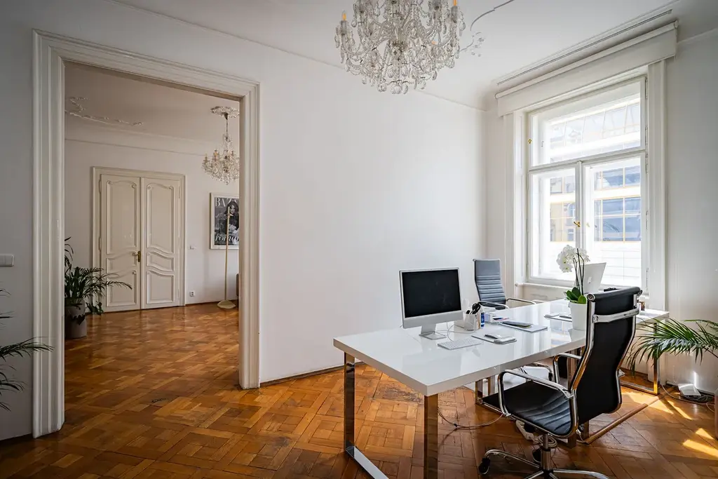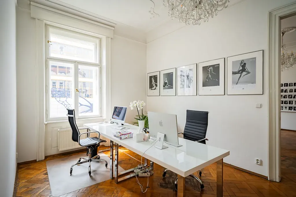 Jedinečné prostorné kanceláře s dispozici 5+1 s balkonem, a celkové výměře 197 m², jsou situované ve 3. patře reprezentativního historického domu s výtahem v jedné z nejprestižnějších lokalit Prahy – v samém srdci Starého Města, na adrese Na Perštýně, Praha 1.