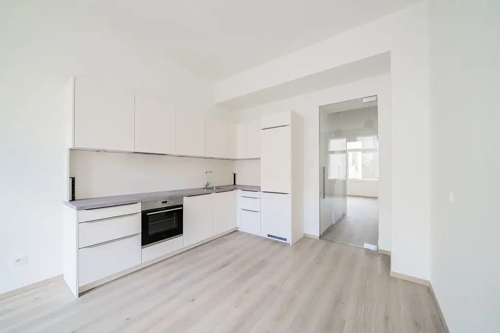 Stylový, nově zrekonstruovaný byt 3+kk ( 2 ložnice, 1 koupelna), o celkové ploše 69,84m2, je situovaný ve 2.NP s výtahem, v budově v klidném vnitrobloku, která se nachází se ve vyhledávané lokalitě v Praze 1, na Václavském náměstí.