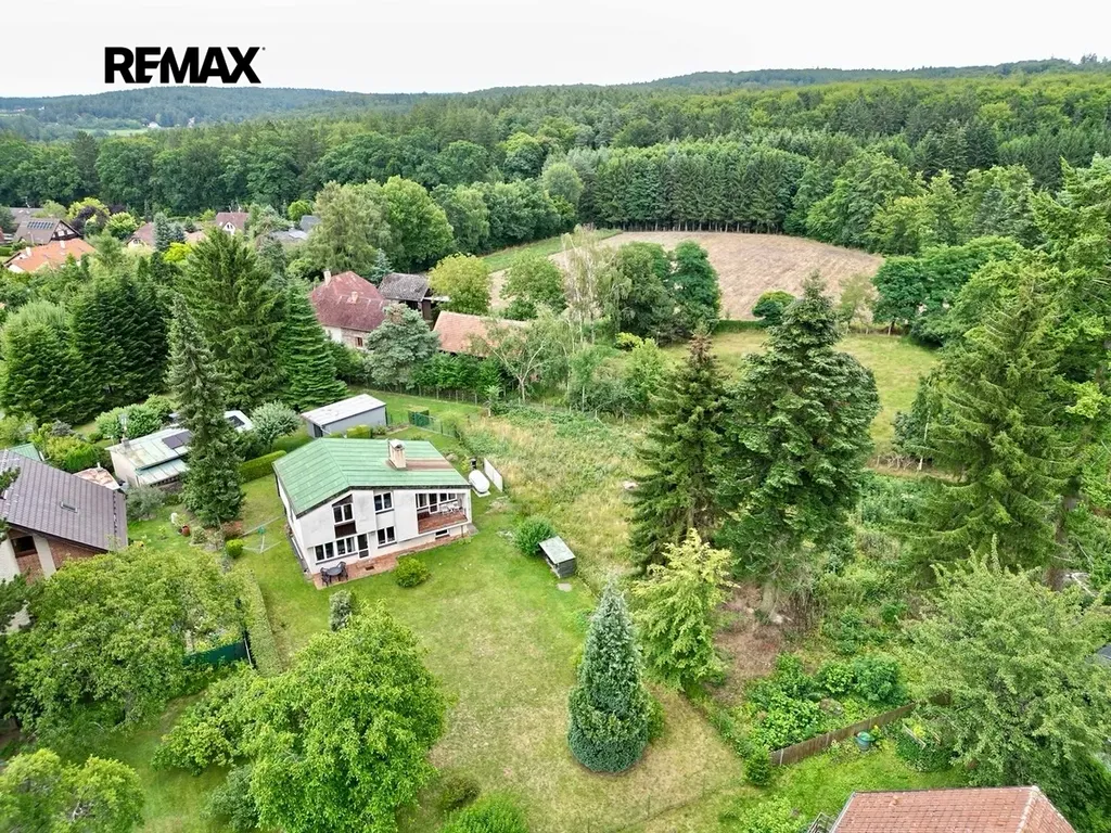 V okolí domu je hezká příroda s rybníky a možnostmi pro procházky v „nekonečném“ lese. Ideální místo pro klidné bydlení hned u Prahy.