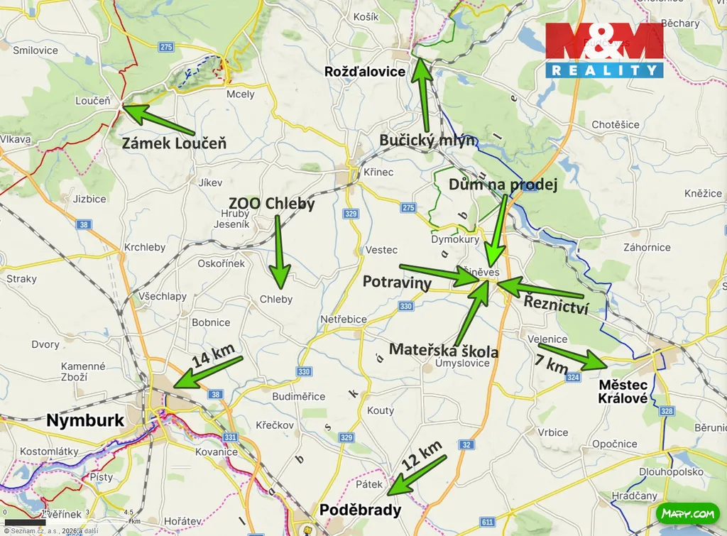V obci je k dispozici mateřská škola, potraviny, hospoda i hřiště. Kompletní občanskou vybavenost najdete v Městci Králové (5 min) a Poděbradech (14 min), kam jezdí pravidelné autobusové spoje.