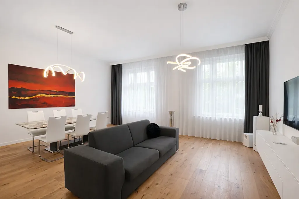 K dlouhodobému pronájmu nabízíme výjimečný, plně zařízený byt 2+1 o velikosti 84 m², který se nachází v 1. nadzemním podlaží udržovaného domu v atraktivní a vyhledávané části Prahy 5 – Smíchov.