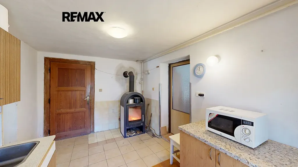 • Vytápění: krbová kamna s výměníkem (cca 2 roky), komín vyvložkovaný