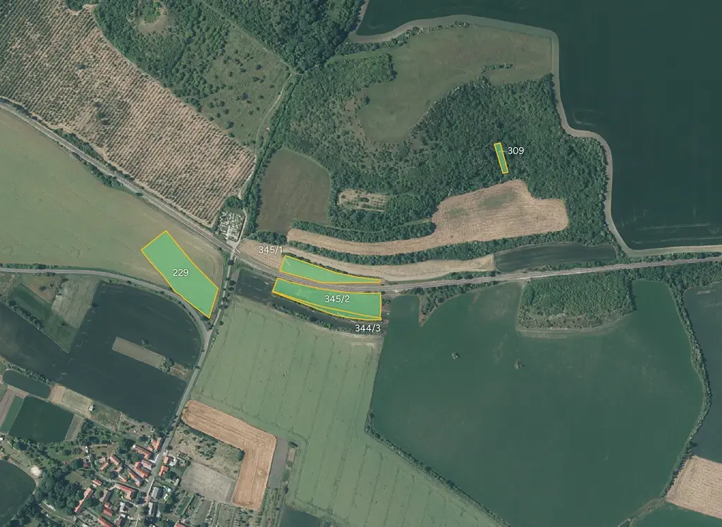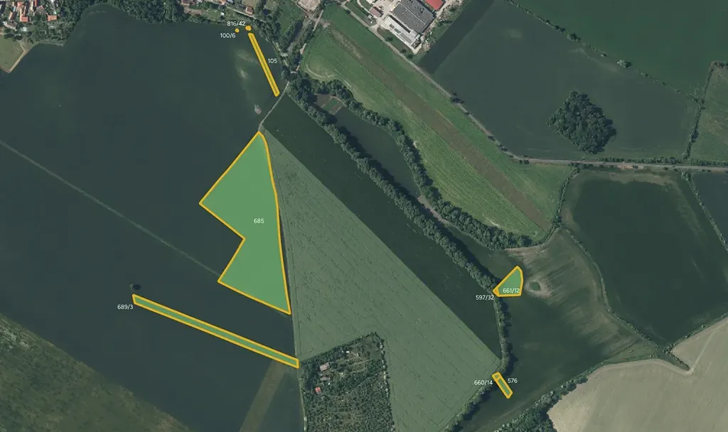 orná půda: 105, 163, 229, 345/1, 345/2, 431, 540, 576, 597/32, 661/12, 685, 689/3, 769 - celkem 73 962 m²