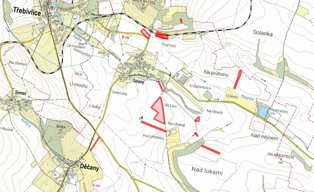 V katastrálním území Solany, obec Děčany, okres Litoměřice, nabízíme k prodeji rozsáhlý komplex pozemků ve výlučném vlastnictví o celkové výměře 75 550 m². Pozemky jsou zapsány na listu vlastnictví č. 59.