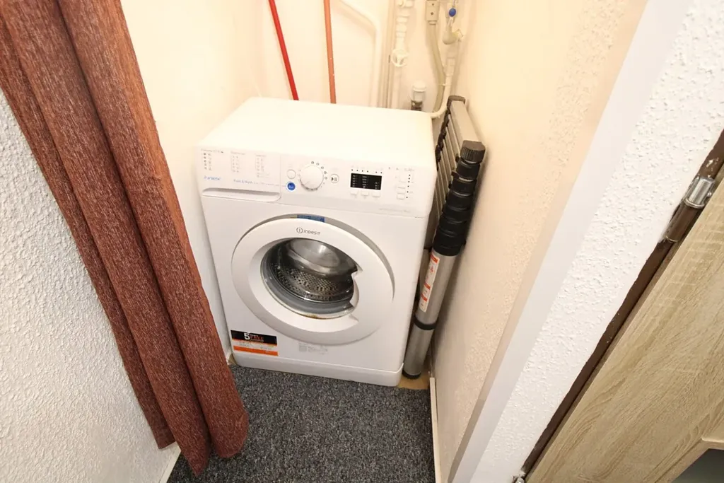 Byt je plně vybaven – součástí pronájmu je nábytek dle fotografií, kompletně zařízená kuchyňská linka včetně spotřebičů a pračka. Vytápění zajišťuje vlastní plynový kotel, což umožňuje regulovat náklady i tepelný komfort podle vlastních potřeb.