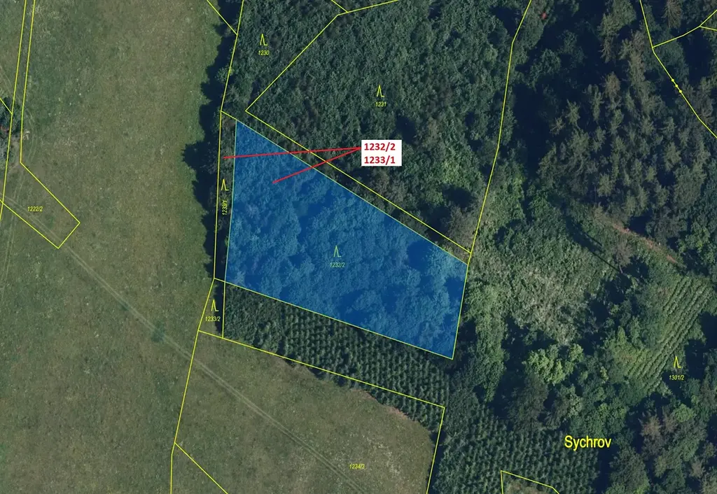 Lesní pozemek o výměře 4514 m2, parcelní čísla 1232/2, 1233/1, podíl 1/1, katastrální území Horní Studénky, obec Horní Studénky, obec s rozšířenou působností Zábřeh, okres Šumperk, Olomoucký kraj.