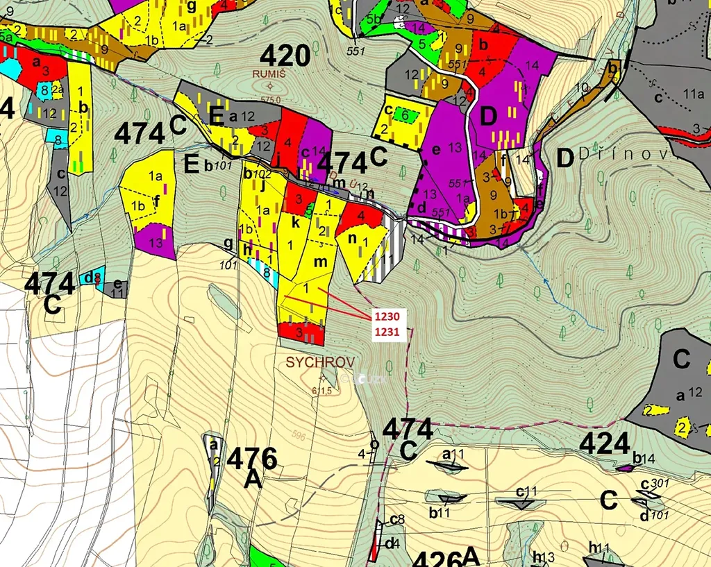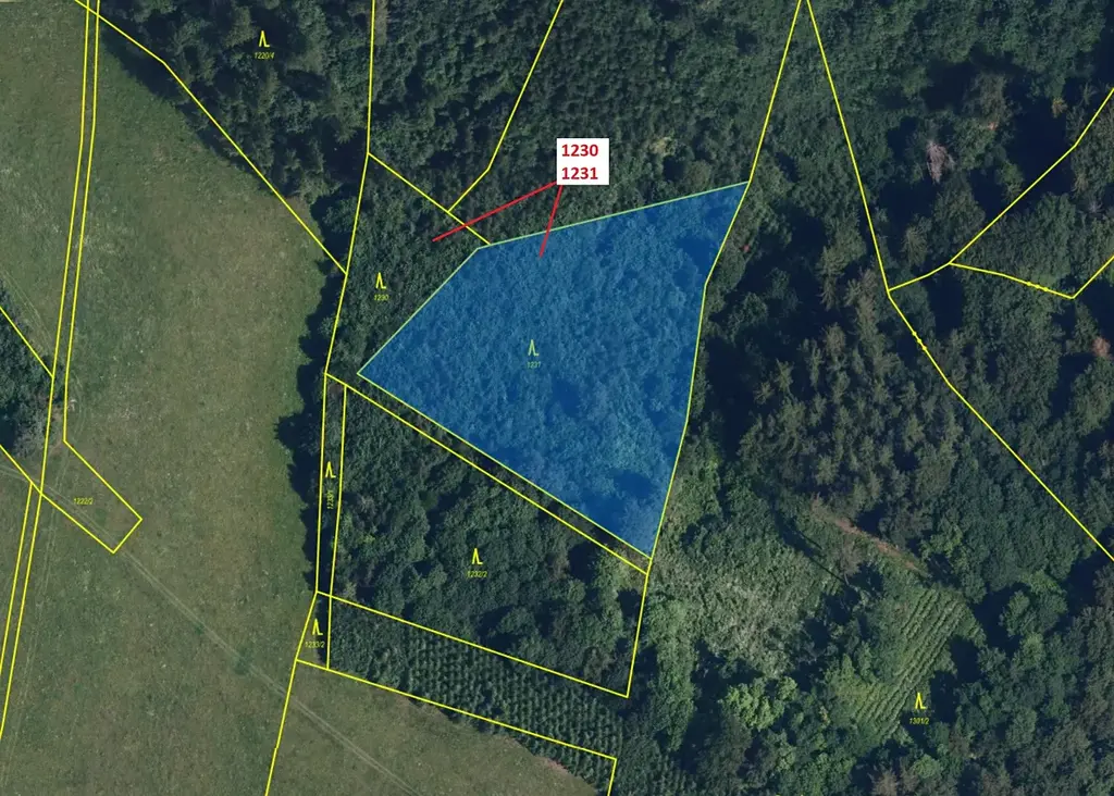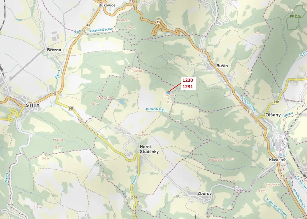 Lesní pozemek o výměře 7904 m2, parcelní čísla 1230, 1231, podíl 1/1, katastrální území Horní Studénky, obec Horní Studénky, obec s rozšířenou působností Zábřeh, okres Šumperk, Olomoucký kraj.