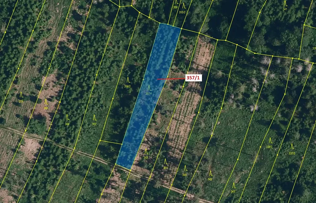 Lesní pozemek o výměře 1670 m2, parcelní číslo 357/1, podíl 1/1, katastrální území Chotěbudice, obec Chotěbudice, obec s rozšířenou působností Moravské Budějovice, okres Třebíč, Kraj Vysočina.