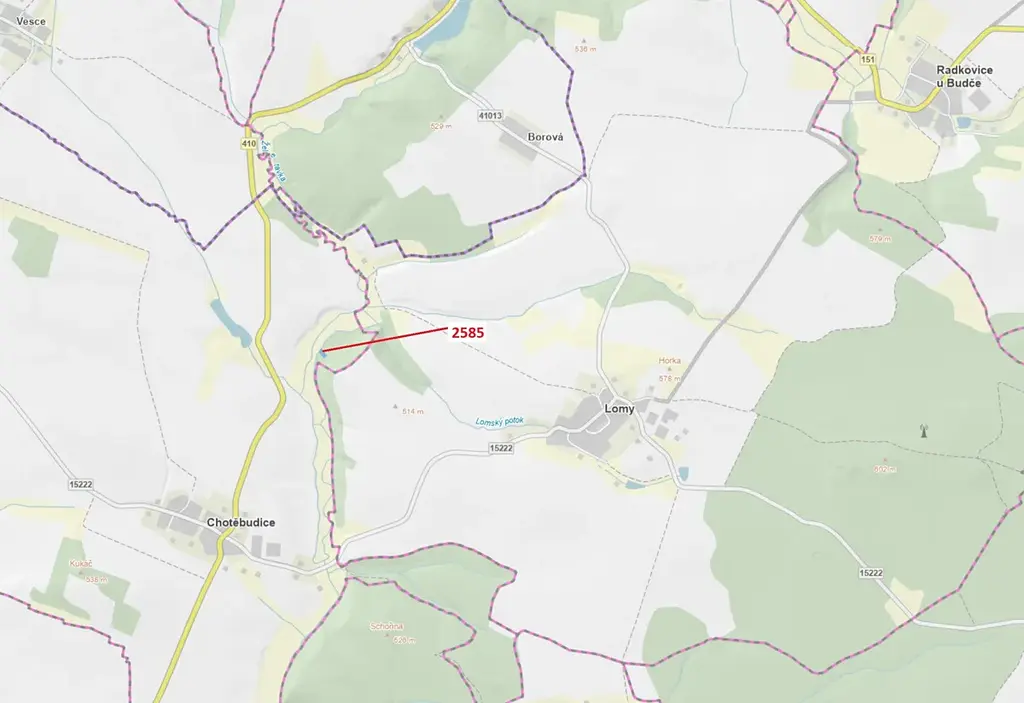 Lesní pozemek o výměře 774 m2, parcelní číslo 2585, podíl 1/1, katastrální území Chotěbudice, obec Chotěbudice, obec s rozšířenou působností Moravské Budějovice, okres Třebíč, Kraj Vysočina.