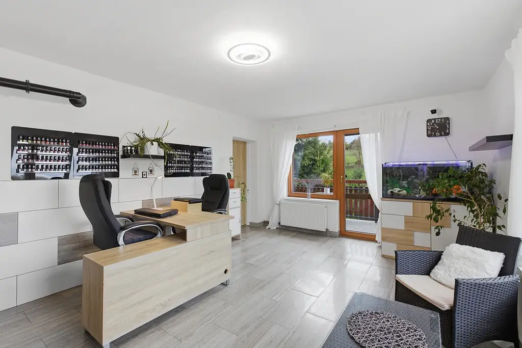 • Okamžité podnikání: Zkolaudované prostory pro služby přímo v patře domu.