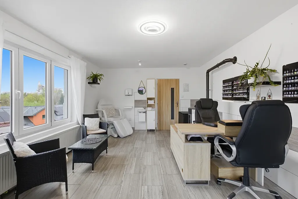 • Horní byt (3+1 | 114 m²): Velkorysý byt se vstupem na půdu. Tato jednotka je navíc oficiálně zkolaudována pro kosmetické služby (manikúra, pedikúra apod.). Můžete zde tedy okamžitě začít provozovat své podnikání bez nutnosti běhání po úřadech.