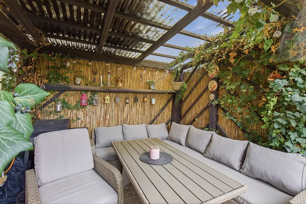 K domu náleží pozemek o rozloze 360 m², který je navržen pro radost, nikoliv pro dřinu. Najdete zde vzrostlou zeleň, která zajišťuje příjemné soukromí a klid od okolí. Pergolu, ideální pro venkovní posezení a odpočinek.
