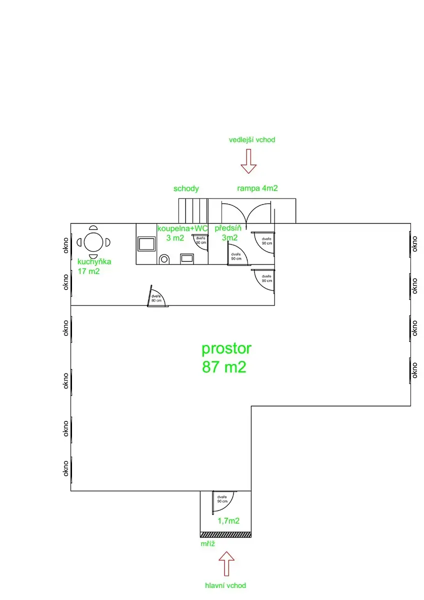 Menší (15m2) je tvořena společnou chodbou a rampou pro nakládku a vykládku zboží z nákladního automobilu.