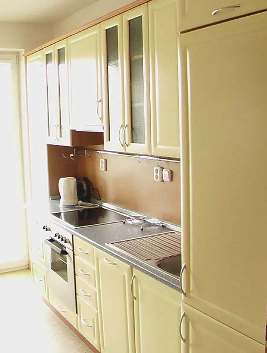 Byt je zařízen - kuchyň linkou a skříněmi, v lince je myčka a trouba, včetně vestavné lednice s mrazákem. V koupelně je koupelnový nábytek a pračka se sušičkou. V obývacím pokoji rozkládací pohovka - dvojlůžko, stůl a židle, stolek a tel. stolek. V ložnici dvojlůžko, skříňky a velká vestavná skříň. Předsíň je vybavena věšákovou stěnou a vestavnými skříněmi s botníkem. Toaleta je závěsná, je vybavena umyvadlem.