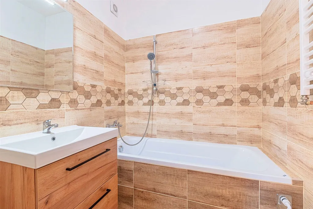 Koupelna a WC čerstvě po renovaci.