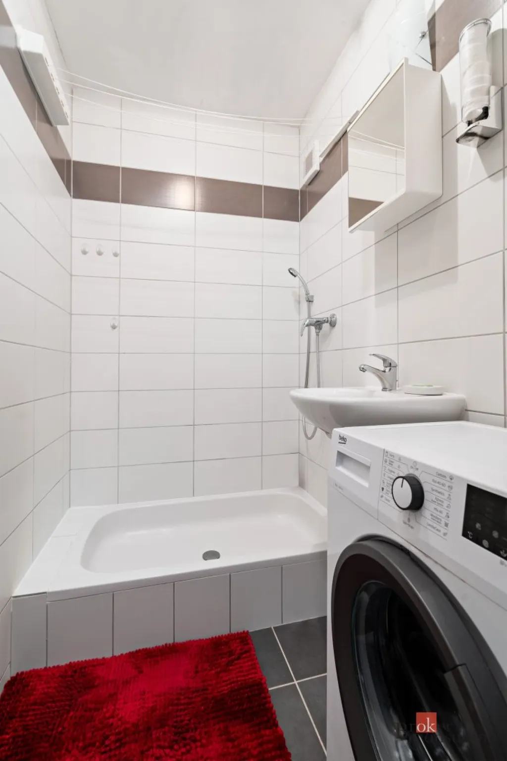 Interiér bytu je zařízen ve vyšším standardu – kvalitní materiály, designová kuchyňská linka včetně vestavěných spotřebičů, stylová koupelna a pečlivě řešené detaily, které vytváří příjemnou a komfortní atmosféru pro bydlení.
