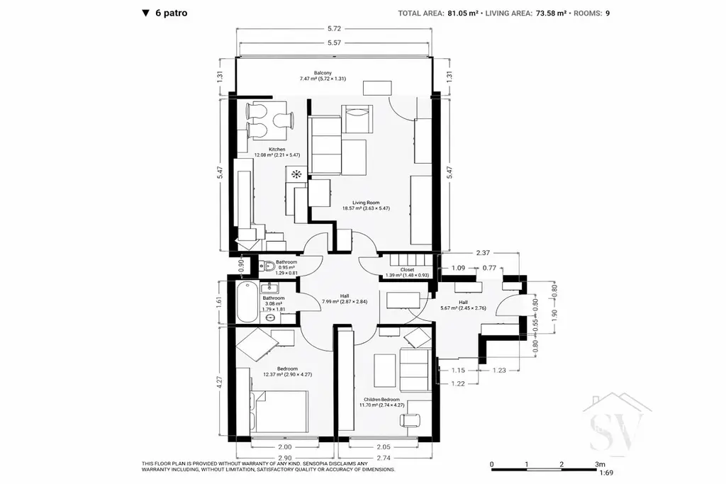 Samostatná kuchyň s jídelnou, obývací pokoj se vstupem na lodžii a dva samostatné pokoje vhodné jako ložnice, dětský pokoj nebo pracovna. Dispozice je funkční a ideální pro rodinné bydlení.