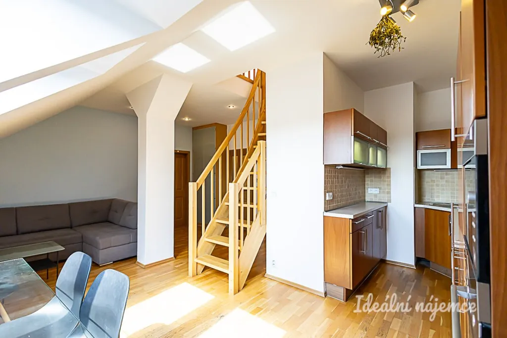Nabízíme k dlouhodobému podnájmu atraktivní a prosvětlený mezonetový byt o dispozici 3+kk a celkové ploše 76 m². Tato moderní jednotka se nachází v posledním, sedmém patře udržovaného bytového domu s výtahem v žádané lokalitě Praha 7 – Holešovice. Součástí pronájmu je také praktický sklep pro uložení sezónních věcí.