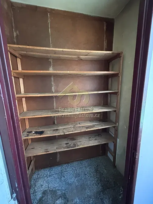 K bytu náleží na patře úložná komora a v přízemí domu plechový úložný box.