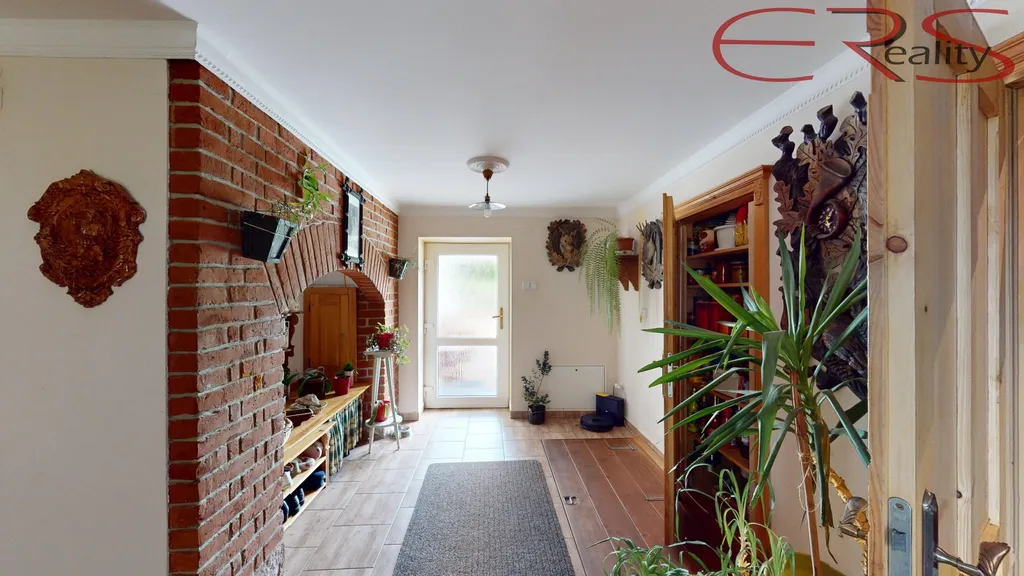 Uvnitř najdete podlahové vytápění, tepelné čerpadlo, krbová kamna s výměníkem a solární panely pro ohřev vody. Jinými slovy, dům umí být útulný, úsporný a technicky chytrý zároveň. Voda je řešena jak ze studny, tak z veřejného vodovodu, takže ani v tomto směru nejste odkázáni na nálady vesmíru.