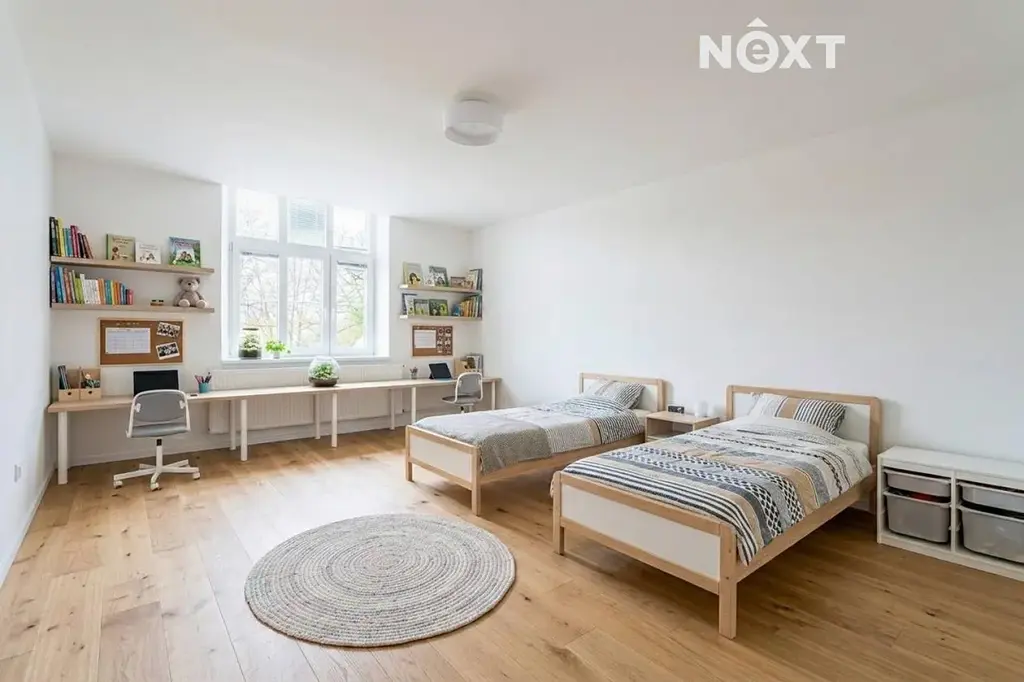 Velkou výhodou je nejen instalovaná klimatizační jednotka ale i vlastní kotel na zemní plyn sloužící k vytápění bytu a ohřevu teplé užitkové vody. V bytě je dispozici prostorná předsíň (12,89 m2), pokoj (23,81 m2), komora (1,72 m2), samostatná toaleta (1,29 m2), prostorná kuchyň (21,18 m2), koupelna 6,61 m2), pokoj (16,7 m2) s nově vybudovanou šatnou (7 m2) a malý průchozí pokoj (7,41 m2). K bytu náleží i sklad (15 m2) a podíl na společný prostorách nacházejících se v suterénu domu, dále podíly na ploše společného dvora a zahrady. Což nabízí novým majitelům bydlení téměř srovnatelné s rodinným domem.