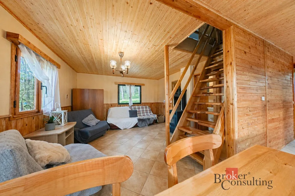 Nechte se zlákat dřevěným interiérem, praskajícími kamny a na závěr dne odpočinkem ve velké podkrovní ložnici. Značnou výhodou je koupelna se sprchovým koutem, pitná voda vedená ze studny, která je pravidelně kontrolována, venkovní udírna a prostorná kolna.