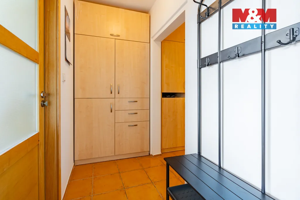 Dispozice nabízí praktické řešení s dostatkem úložných prostor a vybavenou kuchyní. K bytu náleží sklepní kóje a k dispozici je také společná lodžie na patře o velikosti 7 m².
