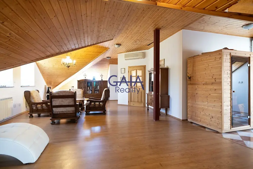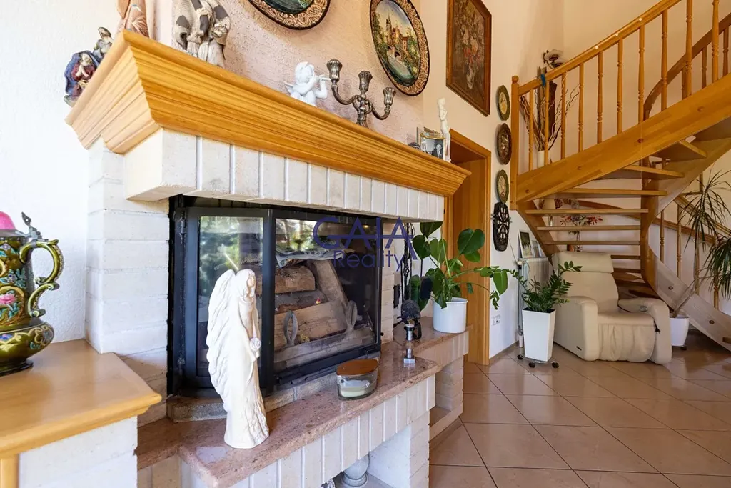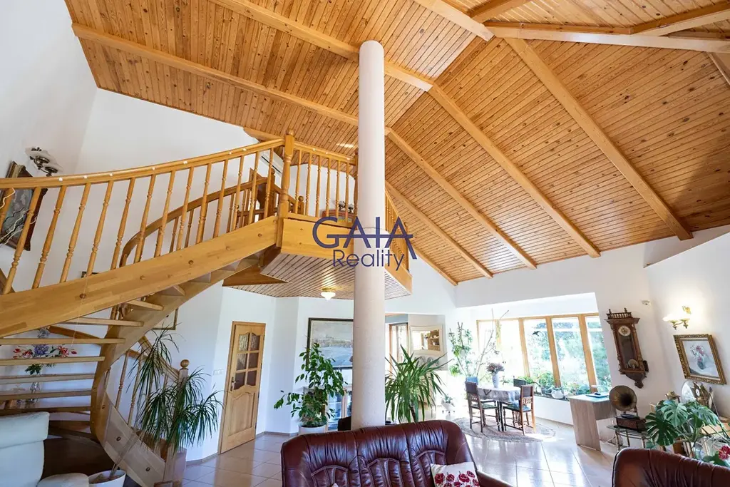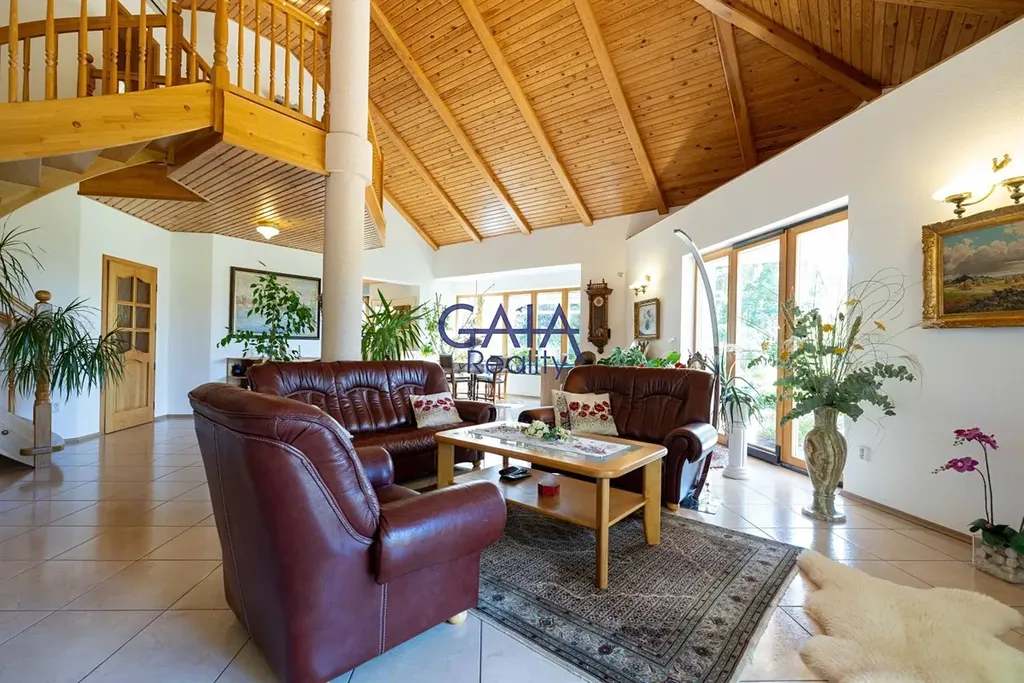 Dominantou interiéru je velkolepý obývací pokoj s kuchyní a galerií o ploše cca 70 m², kde atmosféru a teplo domova umocňuje krb. Dům je rozdělen do dvou podlaží, přičemž každé disponuje vlastní koupelnou, což zajišťuje maximální komfort celé rodiny.