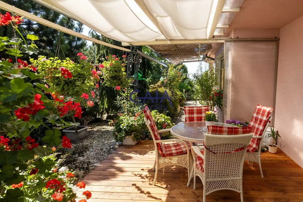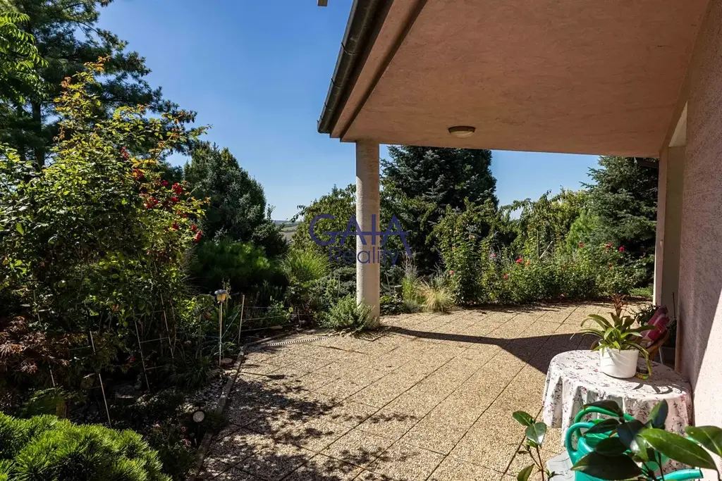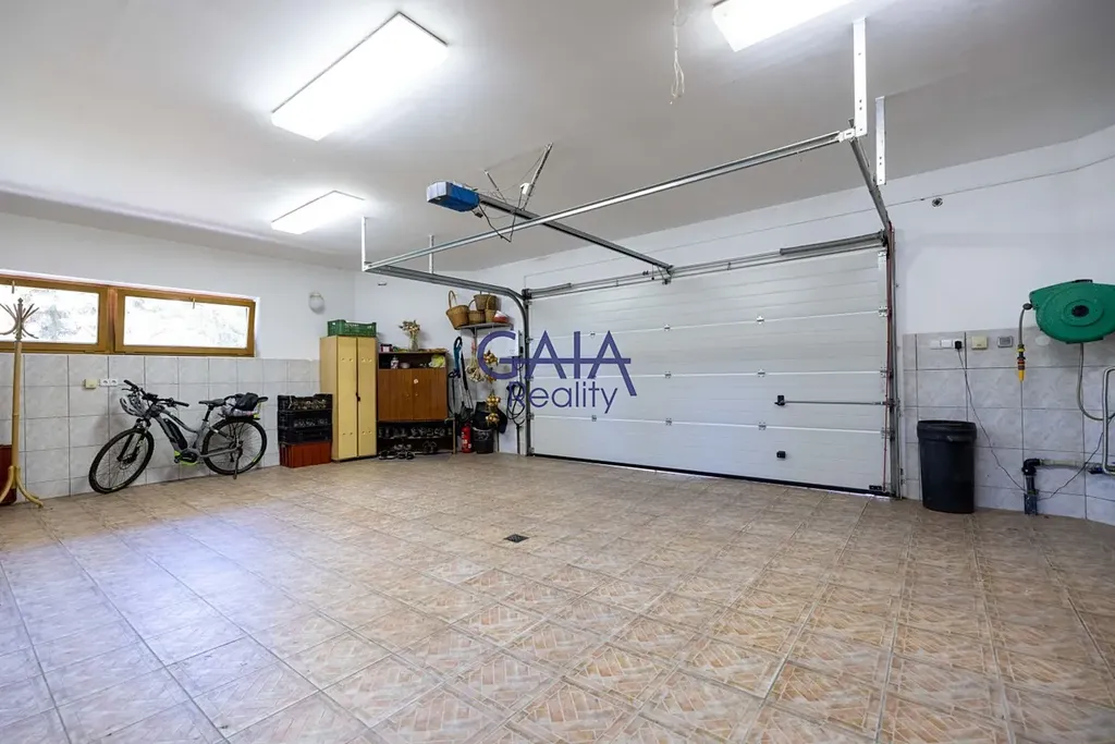 K praktickému zázemí patří garáž pro tři automobily a venkovní krytá terasa. Celková výměra pozemků přesahuje 3.000 m² a zahrada díky tomu nabízí absolutní soukromí, prostor k relaxaci i bezpečné zázemí pro děti.