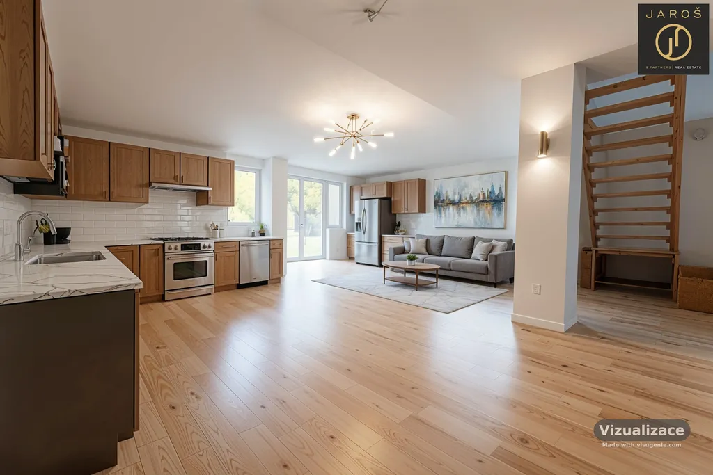Nabízíme k prodeji moderní řadový rodinný dům o dispozici 5+kk a celkové ploše 245 m², který je součástí projektu Rezidence Park Svitavy. Dům nabízí prostorný obývací pokoj s kuchyňským koutem a přímým vstupem na terasu a zahradu orientovanou směrem do parku. V přízemí se dále nachází koupelna, zádveří a garáž, která je přístupná přímo ze vstupní chodby. V patře jsou čtyři samostatné pokoje, koupelna a balkon s příjemným výhledem do zeleně, přístupný ze dvou pokojů. Pokoje směrem do ulice mají rovněž svůj vstup na balkon. K domu náleží také dvě parkovací stání přímo před domem.